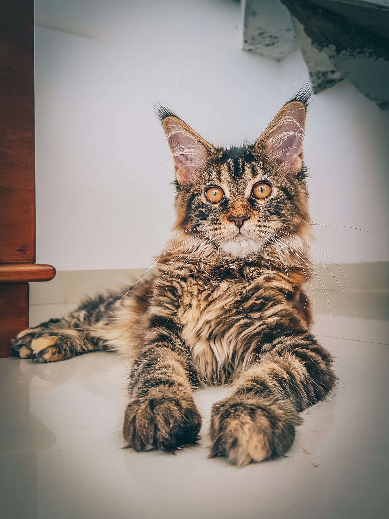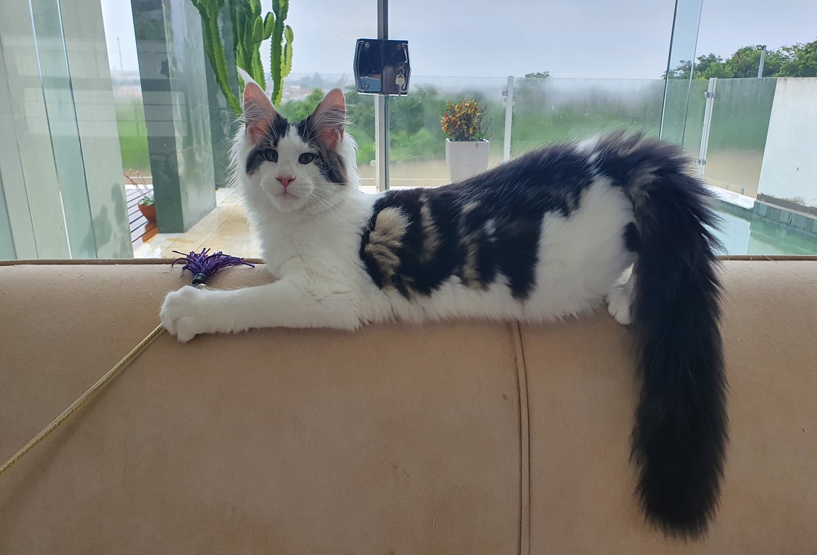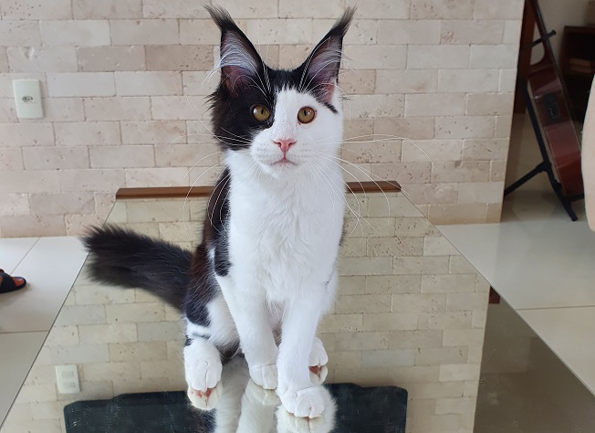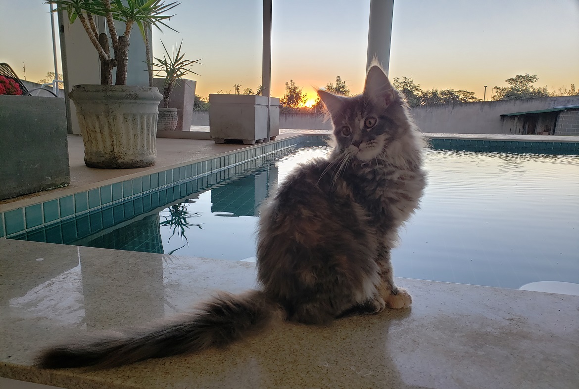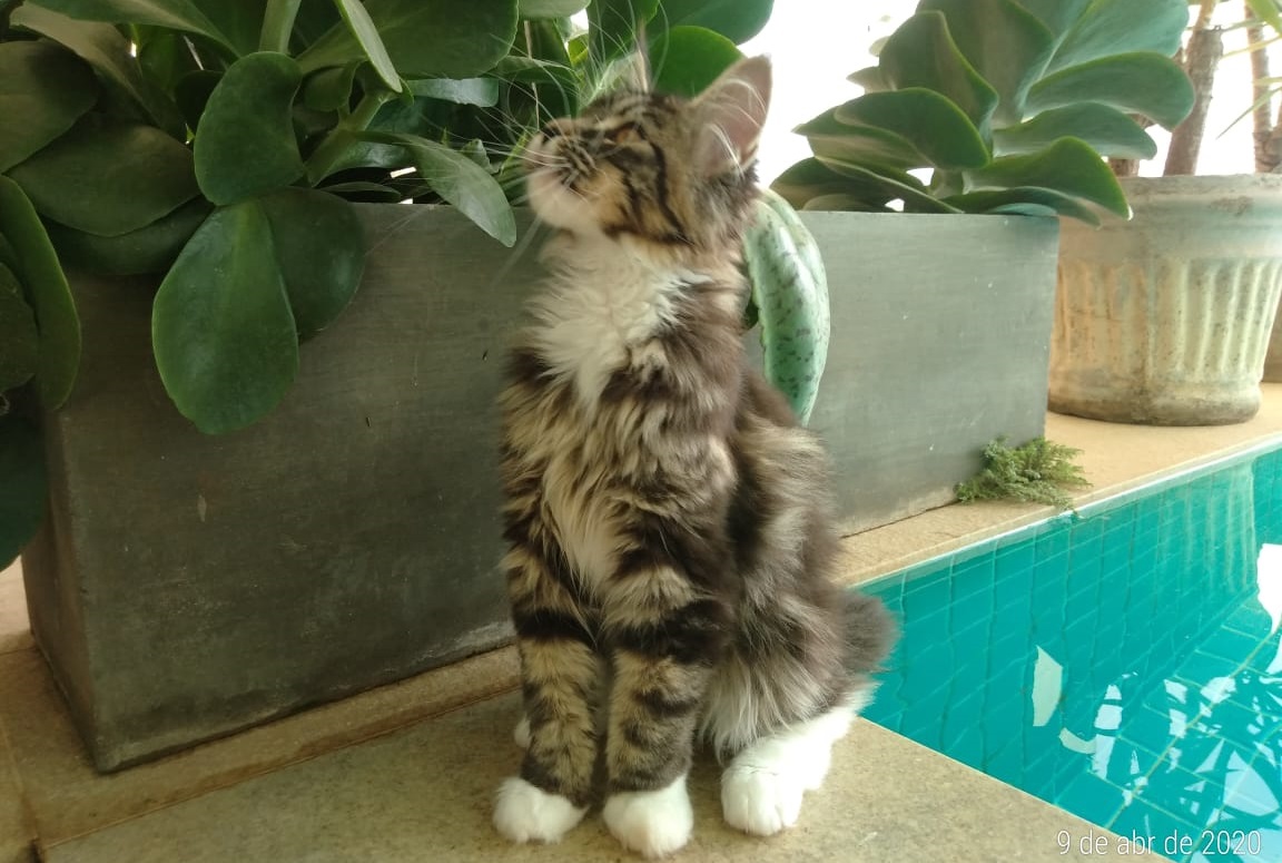 Somos um lar onde vivem Maine Coons. Descobrimos ter em comum a paixão por eles. São gatos grandes com visual selvagem, porém dóceis, meigos, amigáveis e companheiros. Conhecido como o gigante gentil.