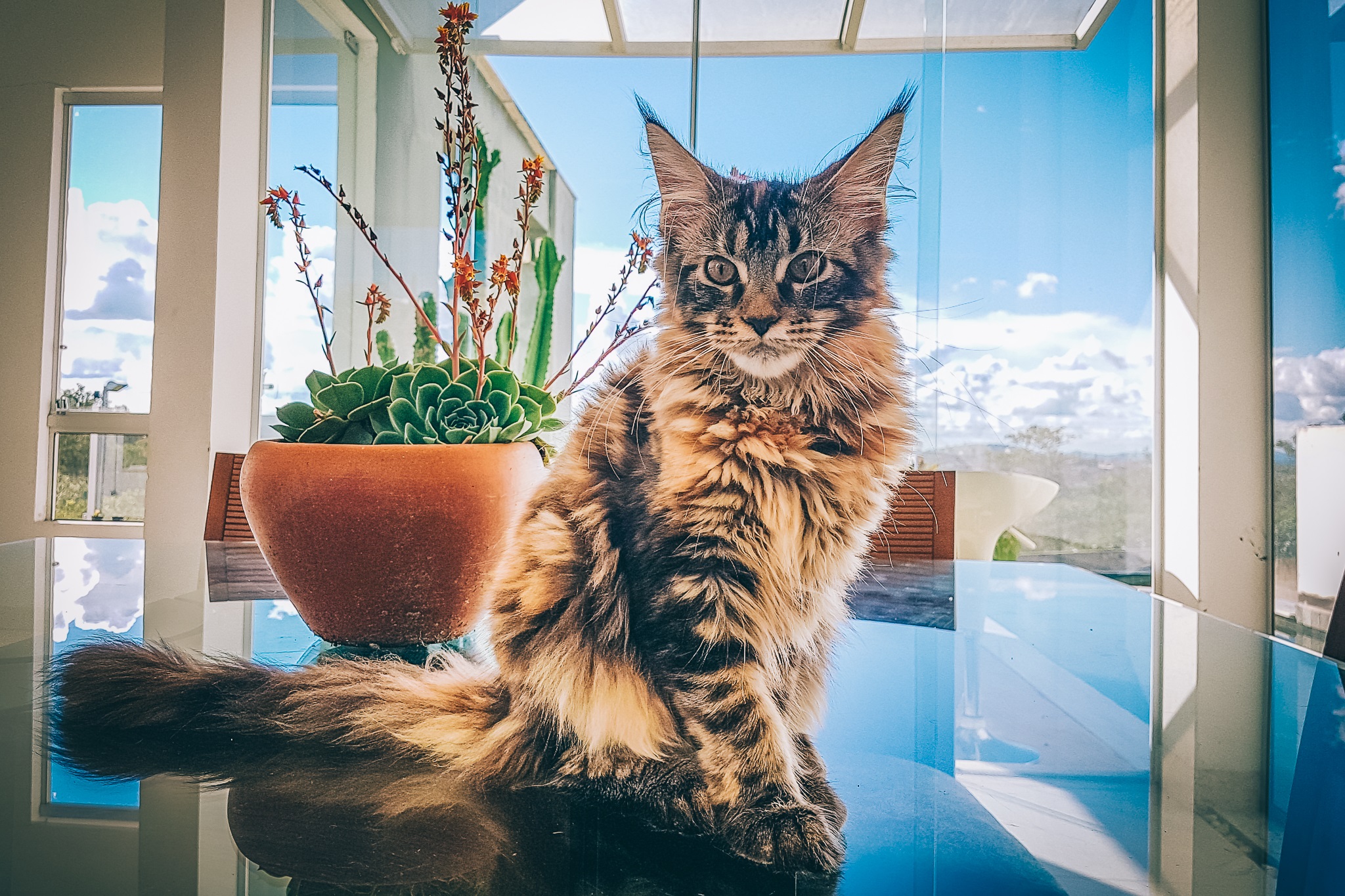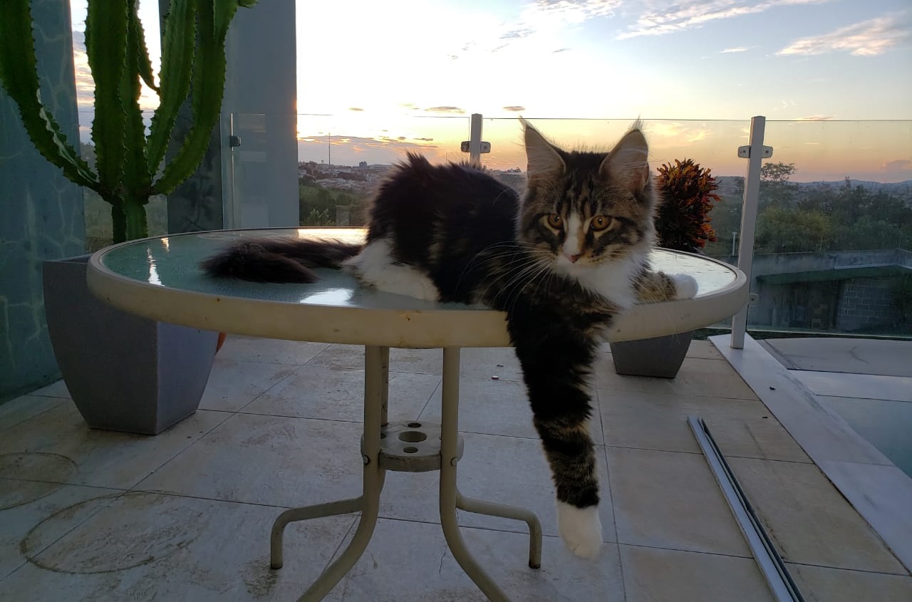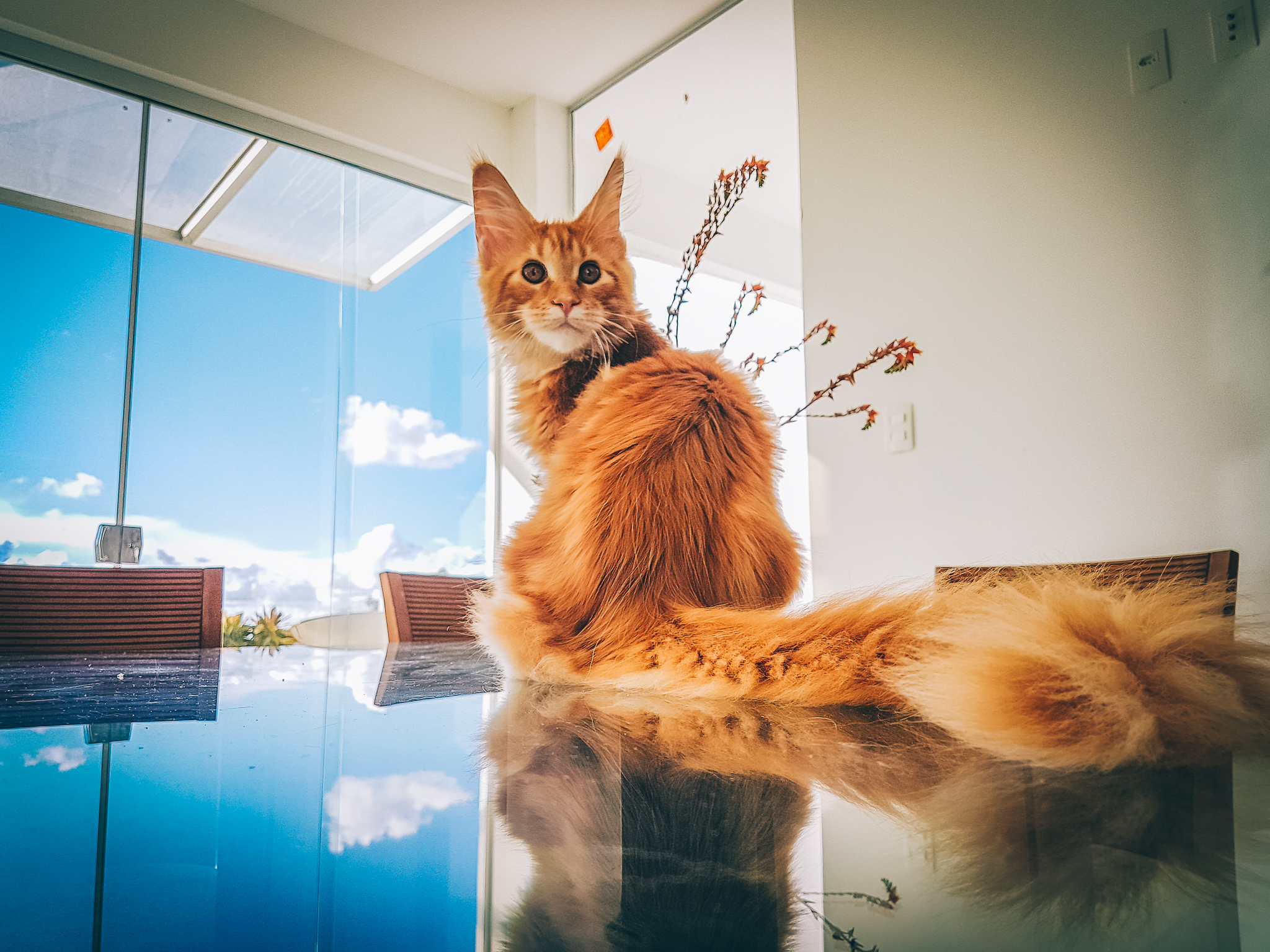 Somos um lar onde vivem Maine Coons. Descobrimos ter em comum a paixão por eles. São gatos grandes com visual selvagem, porém dóceis, meigos, amigáveis e companheiros. Conhecido como o gigante gentil.